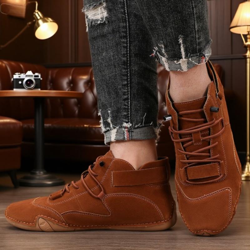 Мужская повседневная обувь Дышащая Мягкая подошва Ручная работа Кожаные Ботинки Босиком Ретро Модный Дизайн Удобные Кроссовки с Высоким Верхом