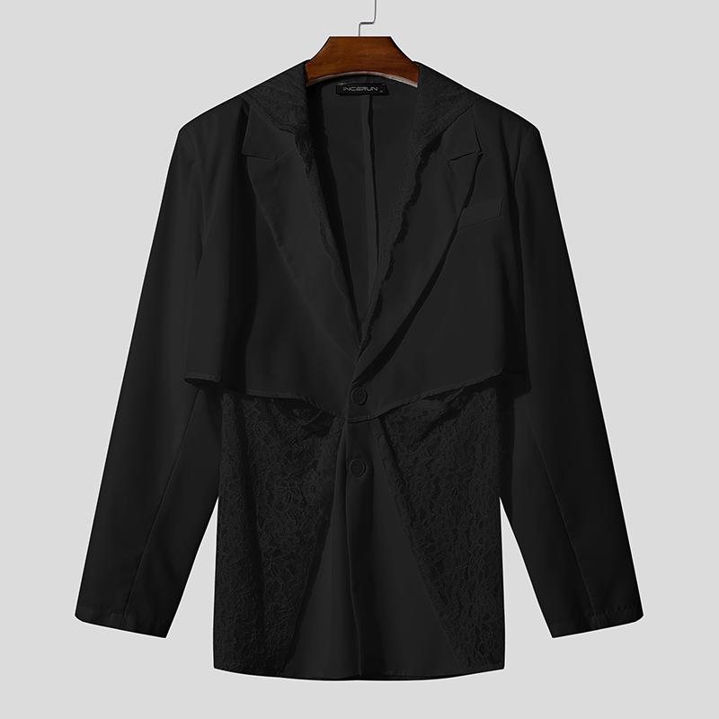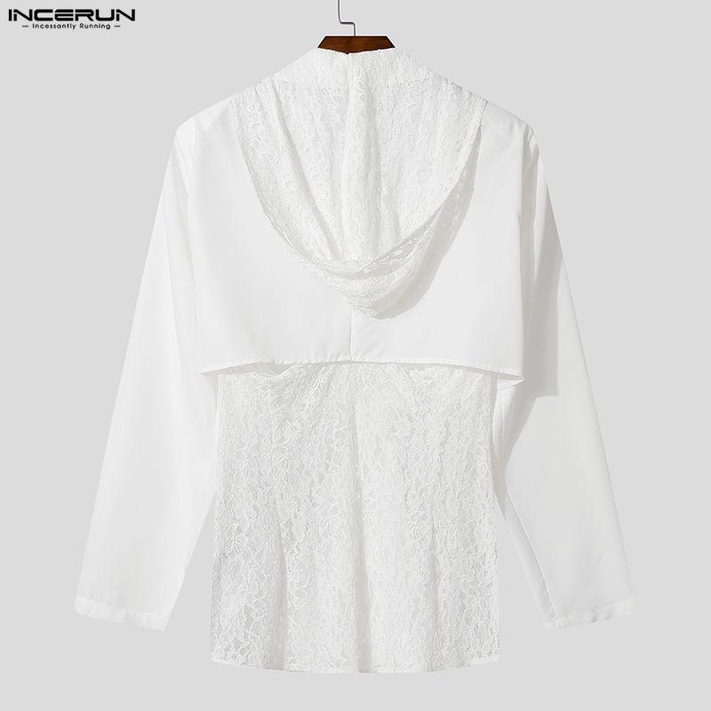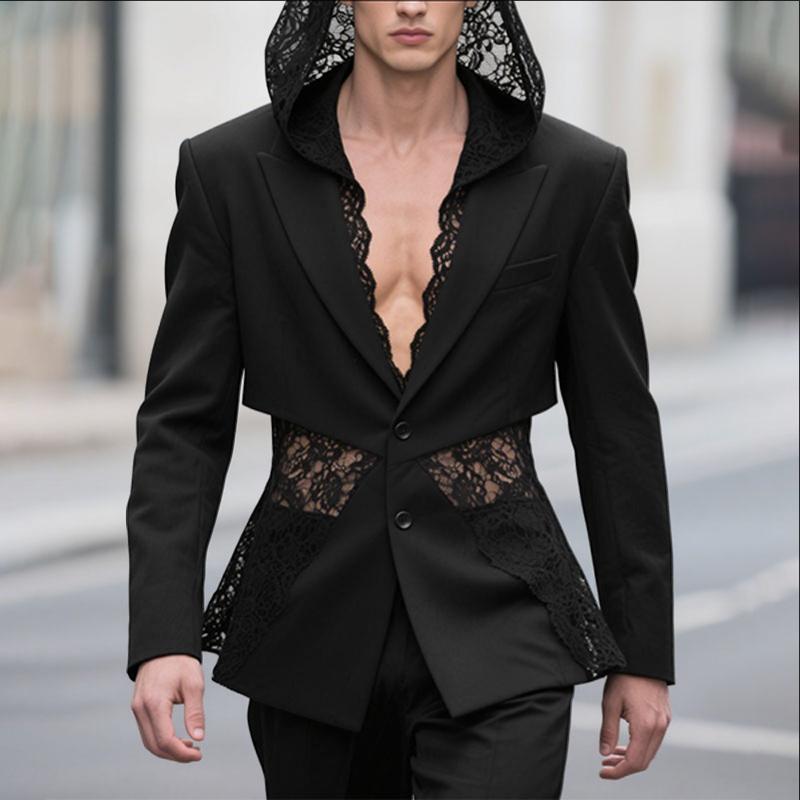 INCERUN Мужские блейзеры для вечеринок с глубоким V-образным вырезом, длинными рукавами, кружевной отделкой и капюшоном