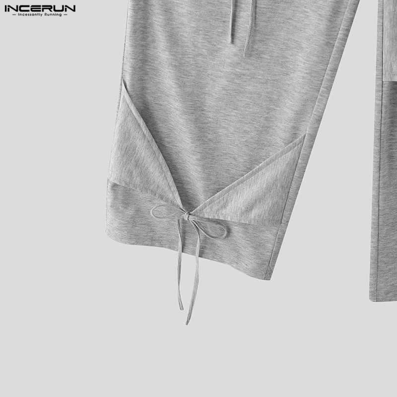INCERUN Мужские повседневные длинные брюки с эластичной талией, заплатками и бантом