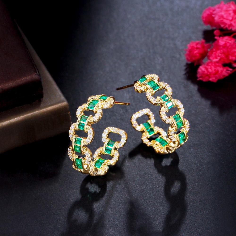 Серьги-петли C-образной формы с геометрическим полым дизайном и микроинкрустацией цирконами