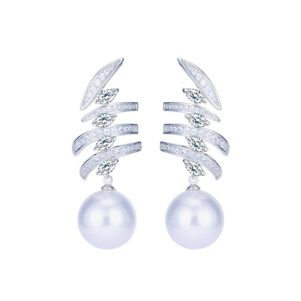 Серьги класса люкс для знаменитостей, инкрустированные цирконом, многослойные геометрические линии, полностью усыпанные бриллиантами, жемчужные серьги