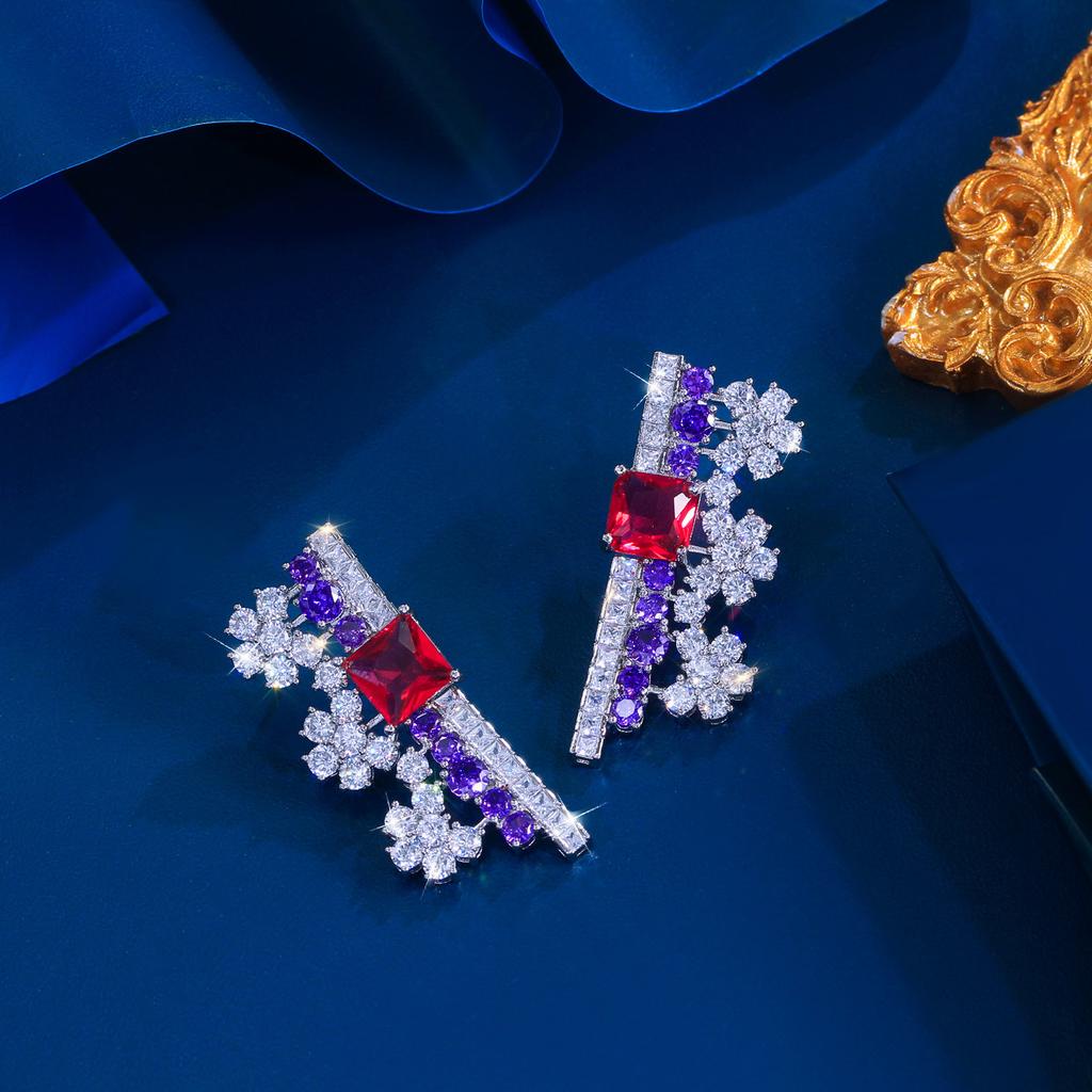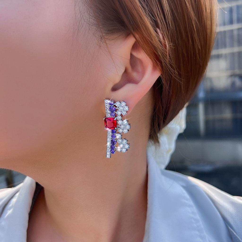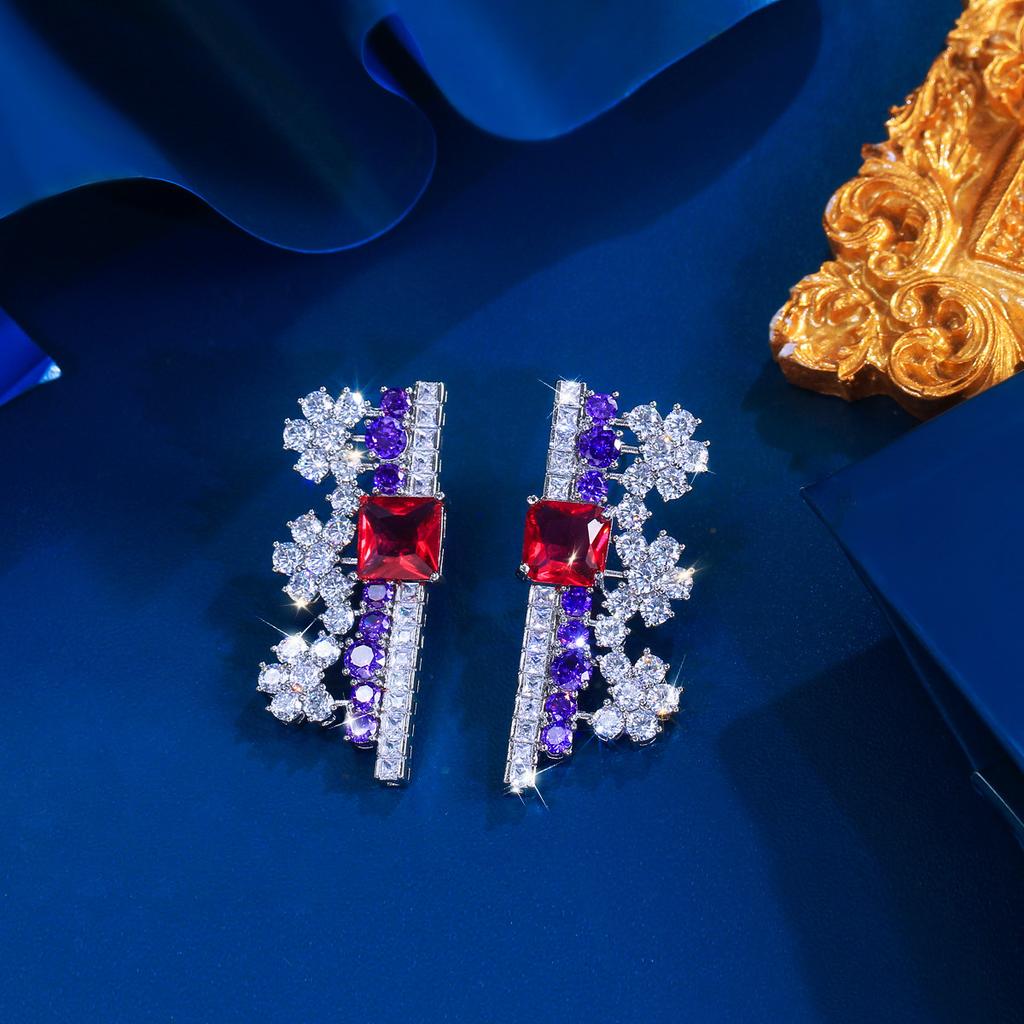 Легкая Роскошь Ретро Микровставка Геометрические Цветные Цирконы Серьги-Цветы Темпераментные Серьги-Пуссеты