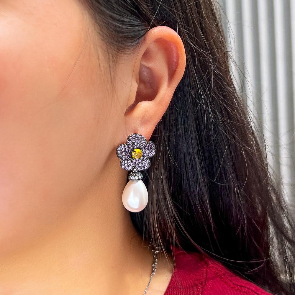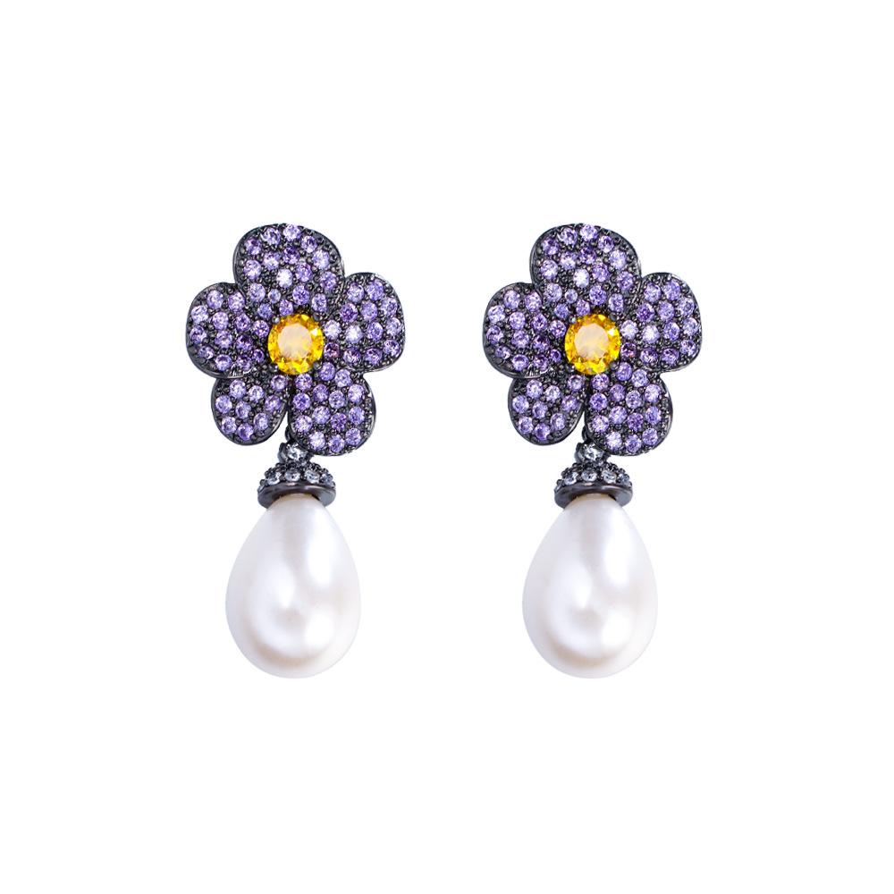 Игла Французский Легкая Роскошь Фея Фиолетовый Цветок Жемчуг Полный Бриллиант Серьги Ретро Темперамент Циркон Серьги Серьги