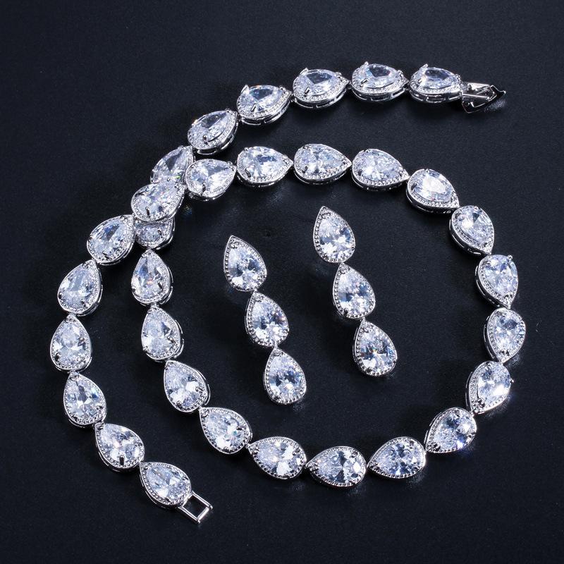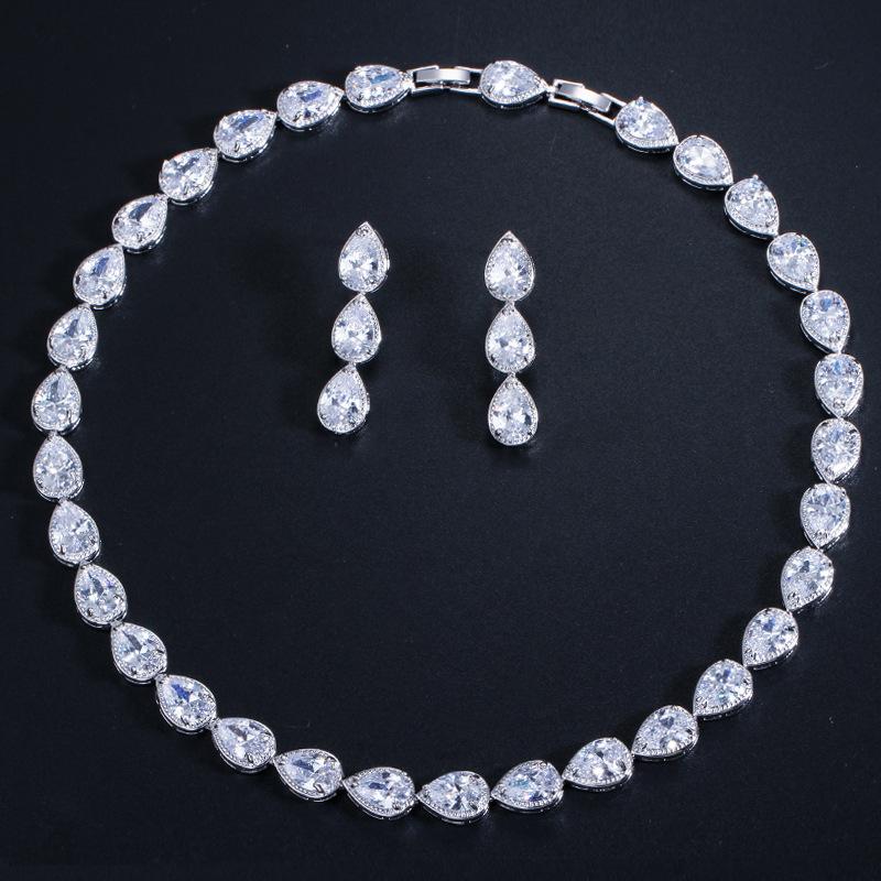 Свадебные серьги, набор ожерелья, ювелирный набор из циркона в виде капли воды, цепочка.