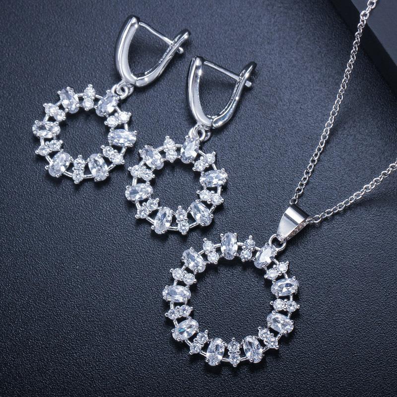 Ki0064 Популярный женский набор украшений, серьги, ожерелье, циркон, полая петля, цепь-чокер
