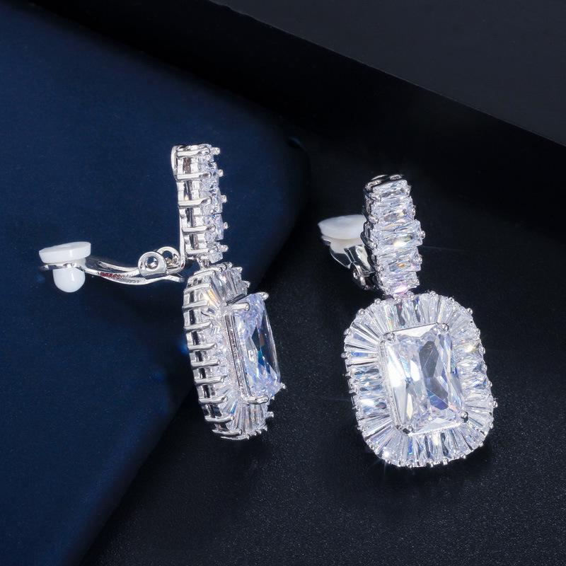 Ej0109 Серьги, Супер Блестящие Квадратные Циркониевые Клипсы, Женские Аксессуары для Торжественного Ужина Высокого Класса