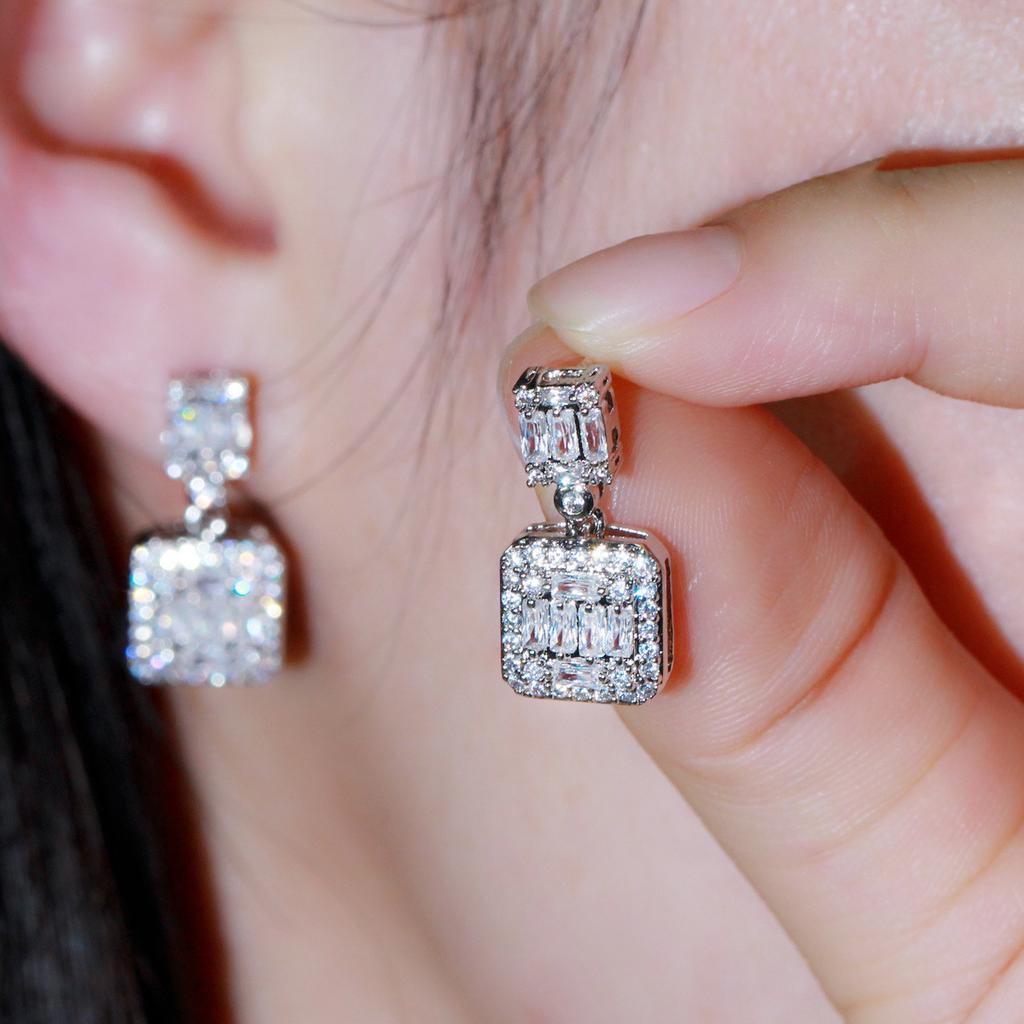 Серьги-пусеты с иглами, слегка инкрустированные цирконием, полностью бриллиантовые, квадратные серьги-лесенки с цирконием для женщин.