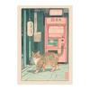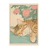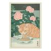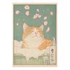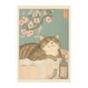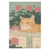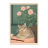 Японский полосатый кот в ванной Постеры Принты Холст Картина Ретро Эстетика Настенное искусство Картина Джапанди Ванная Туалет Домашний декор