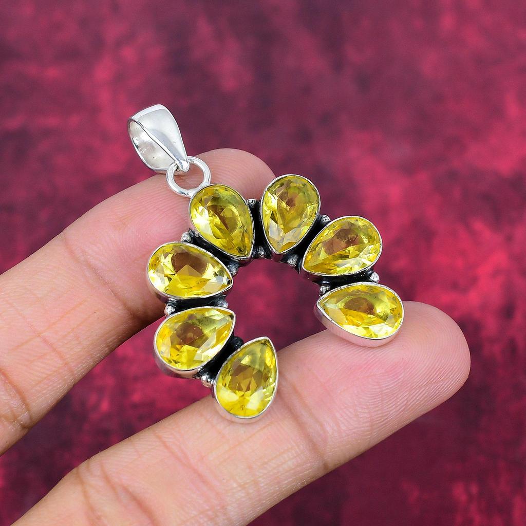 Дизайнерский кулон с лимонным топазом, кулон из стерлингового серебра 925 пробы, кулон ручной работы ко Дню памяти