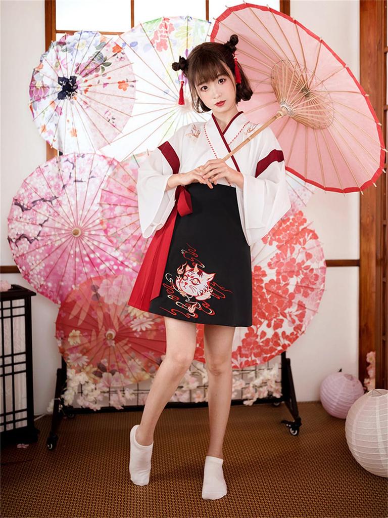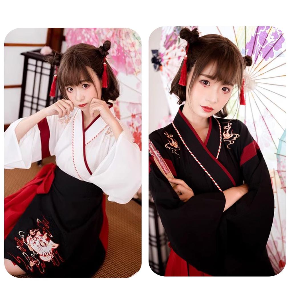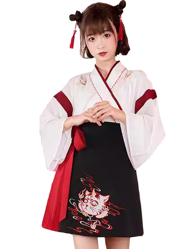 Qichenk Тайсё Романтический Костюм Косплея Жрицы Святилища Хакама Кимоно с Ханфу и Кошкой Плюс Лолита Длинный Размер M Женский Дизайн, Размер, Стиль, Длина,