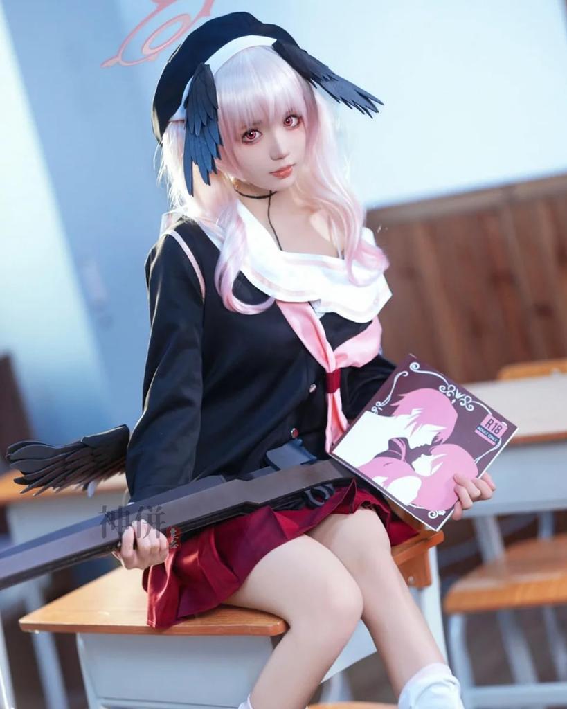 *[Персонаж]: Этот косплей-костюмный набор достоверно воссоздает главного персонажа, Шимоэ Кохару, из популярной игры "Blue Archive".