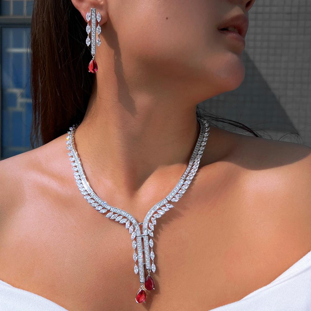 Ожерелье Премиум Легкая Роскошь Капля Воды Циркон Свадебное Платье Комплект Ювелирных Изделий Цепочка