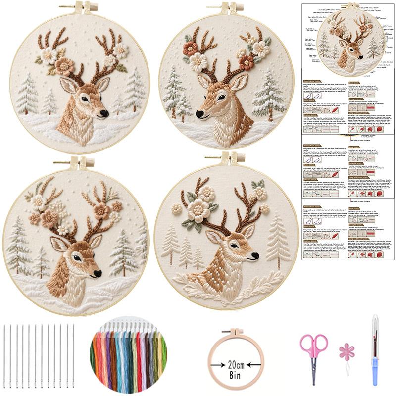1 набор Набор для вышивания «Снежный лес и олень» DIY включает инструменты и учебники по стежкам, подходит для начинающих, и представляет собой набор материалов для вышивания по ткани.