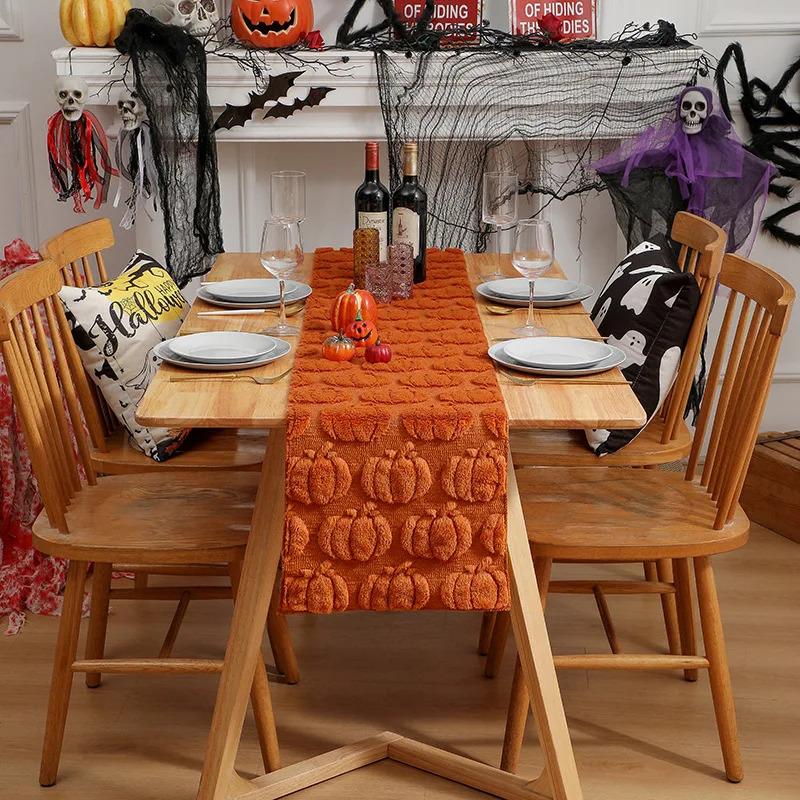 Хэллоуинская скатерть-дорожка, Осенние украшения с тыквами и привидениями для вечеринки и обеда, Осенний декор на День благодарения для обеденного стола, Декор урожая