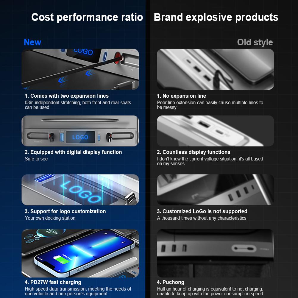 Док-станция 27 Вт PD Центральная консоль Смарт-сенсор Двойной USB USB Адаптер для центральной консоли Цифровой дисплей QC3.0 для Tesla Model 3 Y