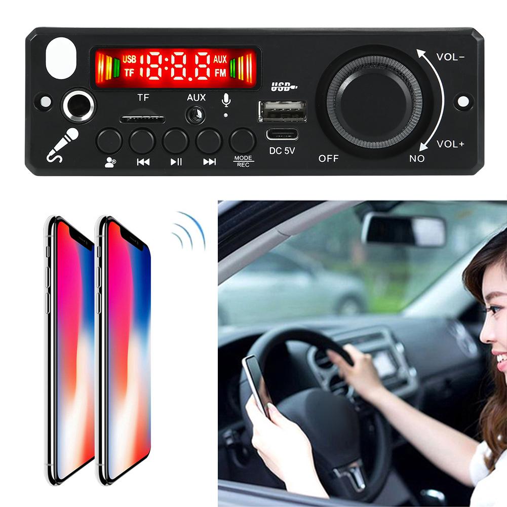 6W Amplifier Car FM Radio Module TF USB Bluetooth-Compatible 5.0 Audio MP3 Player Microphone Record Music Player Hands-Free Call