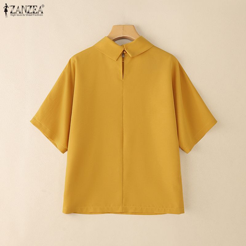 ZANZEA Женская свободная повседневная блузка с воротником-стойкой и летним полурукавом