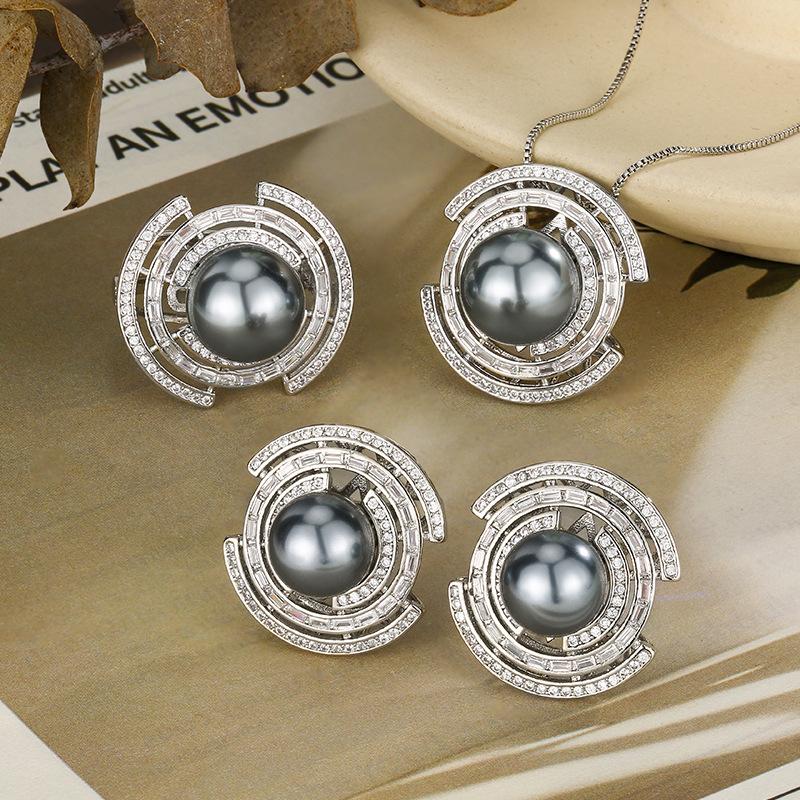 Набор аксессуаров Серьги Ожерелье Кольцо Имитация Жемчуга Платиново-Серые Бусины Женская Высокая Чувственность Элегантность