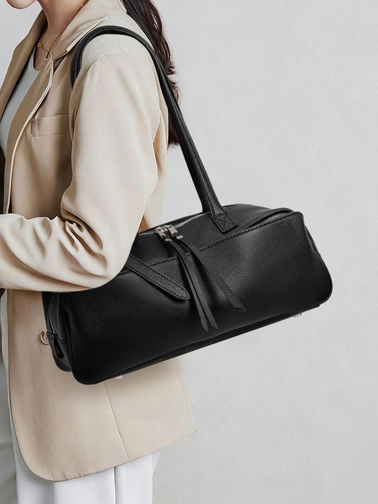 Женская дорожная сумка из натуральной кожи черного цвета с застежкой-молнией – Минималистичная сумка через плечо для работы и путешествий — купить товар онлайн с бесплатной доставкой по всему миру!