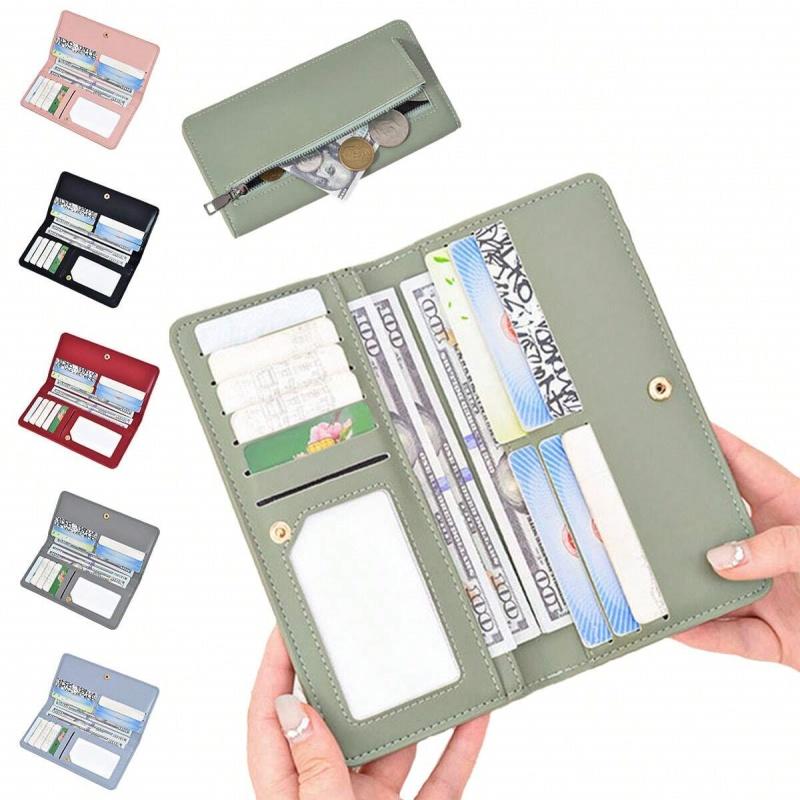 1 шт. ультратонкий кошелек для женщин с блокировкой RFID, держатель для кредитных карт, двойной клатч, кошельки на молнии, дорожный длинный кошелек