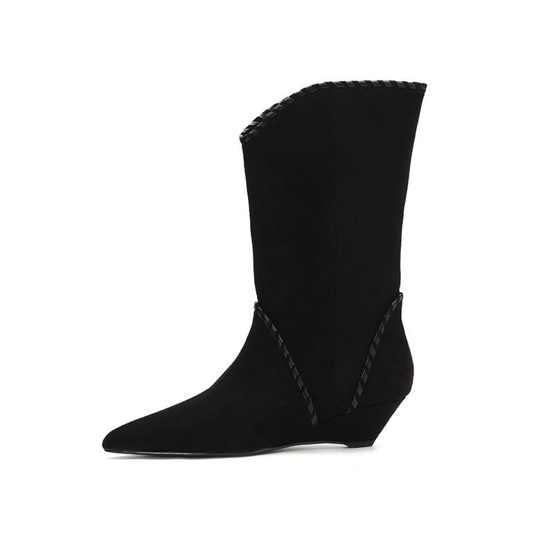 ~ Нишевые ботильоны на танкетке с острым носком и отворотами, ботильоны, ковбойские сапоги в западном стиле, женские 2025, средней высоты