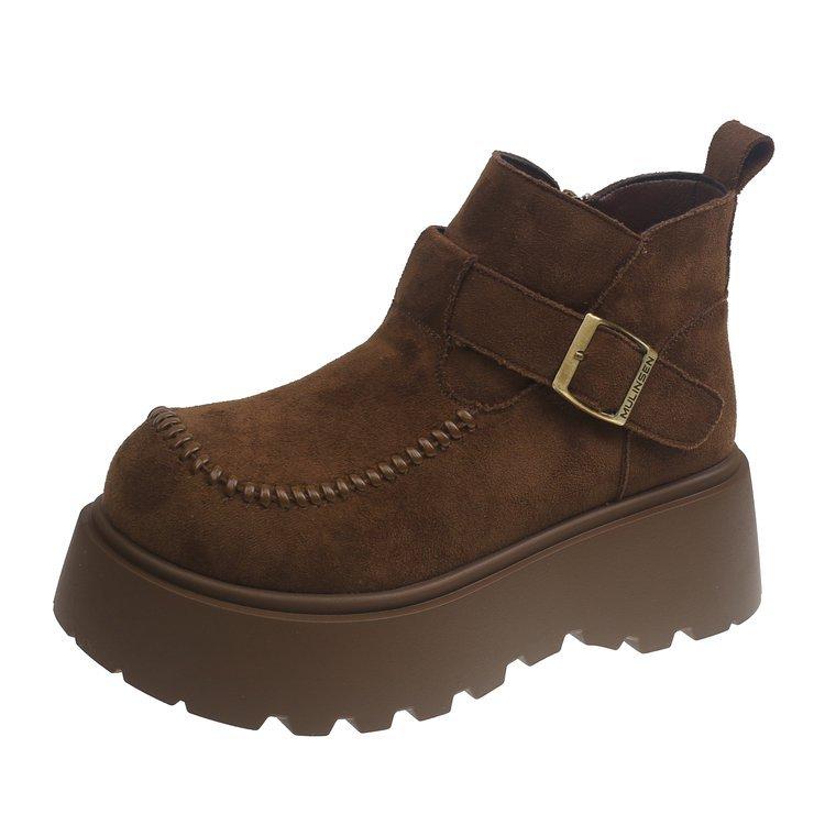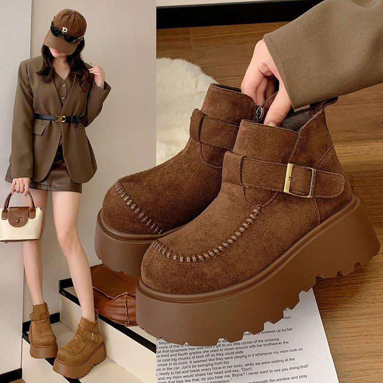 Ботинки мартин на платформе-маффине женские короткие ботинки 2025 осень и зима бархатные универсальные ленивые на одной педали и ботильоны снежные хлопковые ботинки