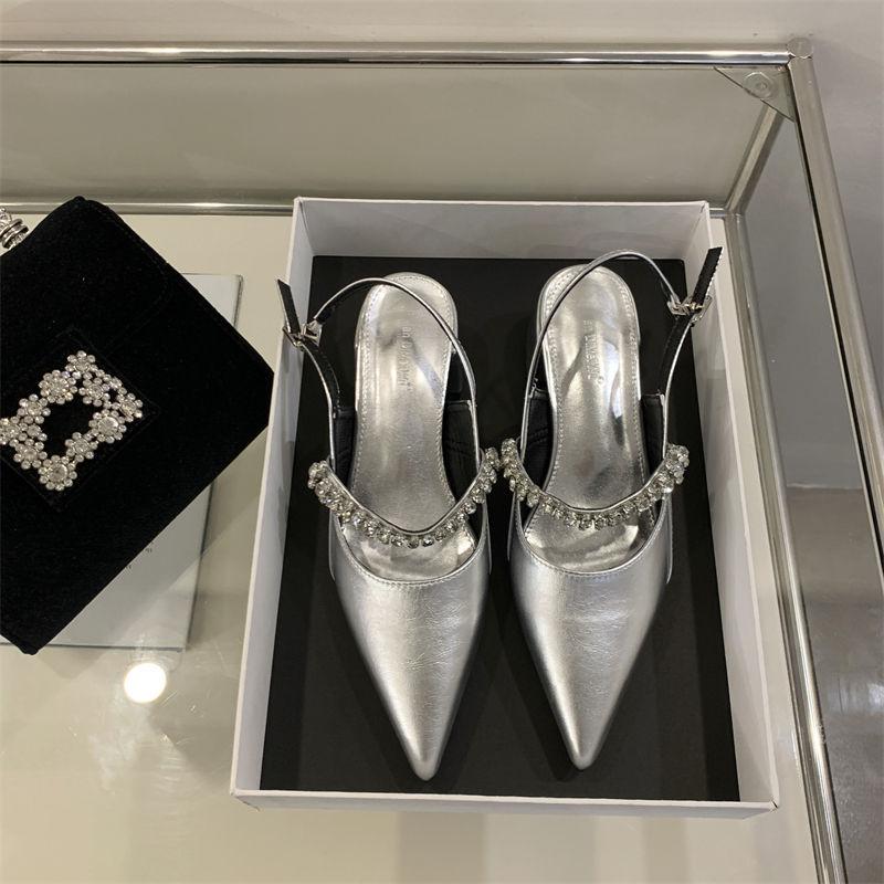 Серебристые туфли-сандалии на толстом каблуке, в стиле феи, лето 2025, винтажные туфли Мэри Джейн со стразами, с острым носком и высоким каблуком