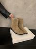 Корейская версия ретро замшевые круглый носок толстый каблук маленькие короткие ботинки женские 2025 весна, осень и зима универсальные ботильоны пустошь ветер