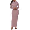 Повседневное женское облегающее длинное платье с длинным рукавом и воротником-гольф однотонного цвета