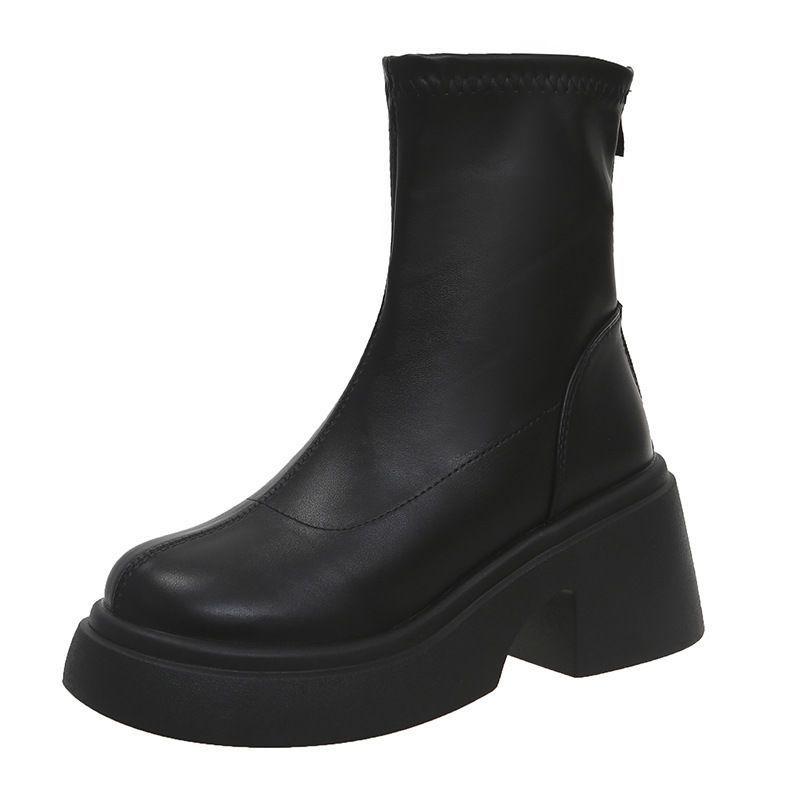 Ботильоны на толстой подошве на высоком толстом каблуке детские 2025 новые осенне-зимние черные тонкие ботинки Челси ботинки Мартин одинарные ботинки