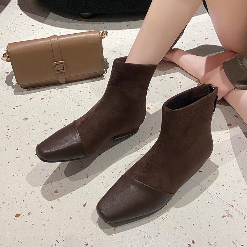 Замшевые туфли на низком каблуке, осень, новый квадратный носок, задняя молния, противоскользящая износостойкая обувь