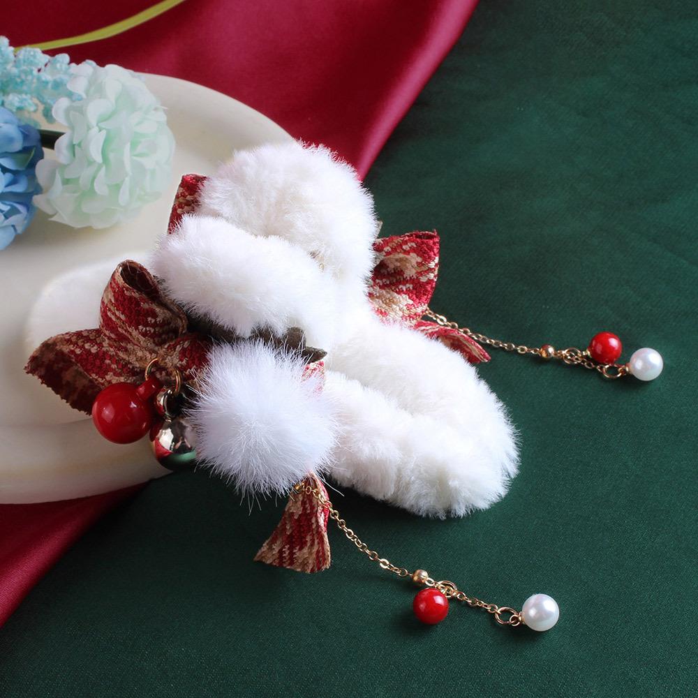Рождественская пушистая заколка для волос в виде оленьих рогов и снежинки для женщин, металлическая заколка с пушистыми краями, аксессуар для волос типа «акула»