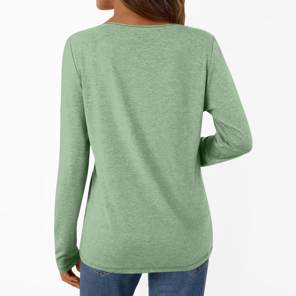 Женская повседневная модная футболка с длинными рукавами и V-образным вырезом, однотонная, с начесом