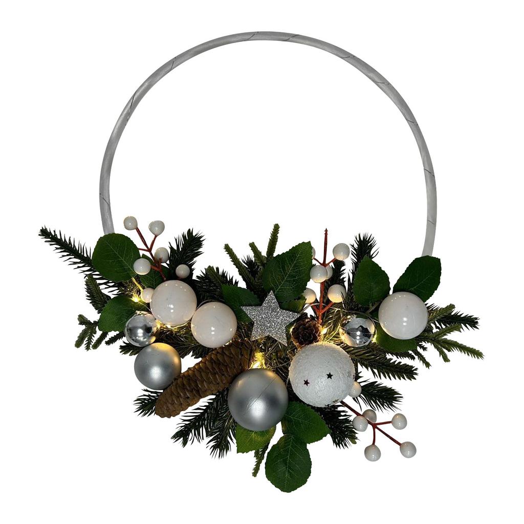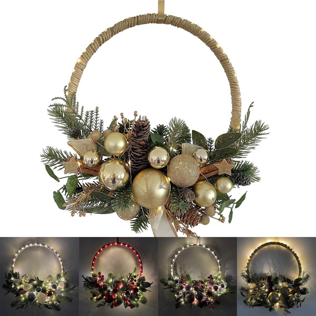 Дверной венок Рождественский венок со светодиодными лампочками, таймером и рождественскими безделушками, украшение Рождество
