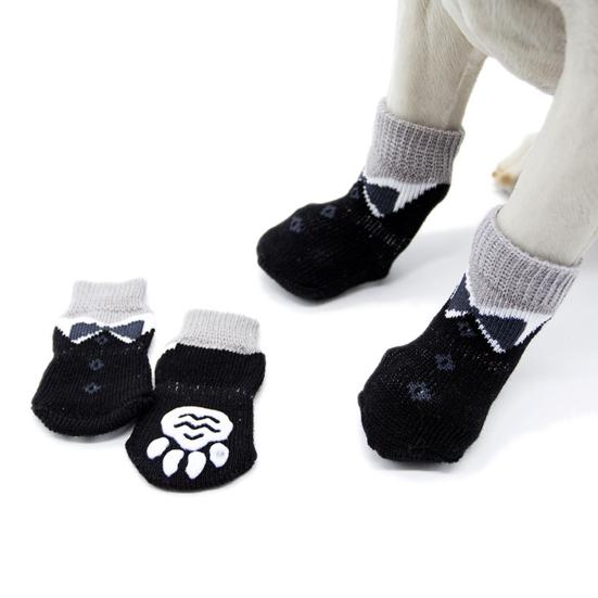4 шт. носки для домашних животных дышащие нескользящие хлопковые вязаные носки с принтом лап для домашних собак для повседневной жизни
