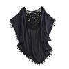 Богемный шикарный дизайн: Создайте повседневный, но в то же время этнический образ с этой блузкой свободного кроя со сложным ажурным узором на груди.. Рукава-летучая мышь и отделка кисточками на манжетах добавят нотку богемного очарования вашему пляжному или у бассейна наряду.