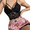 Элегантное кружевное украшение: Украшенный замысловатыми кружевными деталями, этот пижамный комплект излучает пленительное очарование, добавляя нотку изысканности и чувственности в вашу коллекцию домашней одежды.
