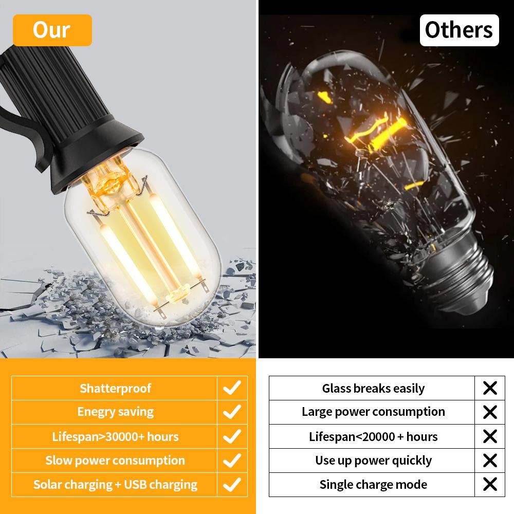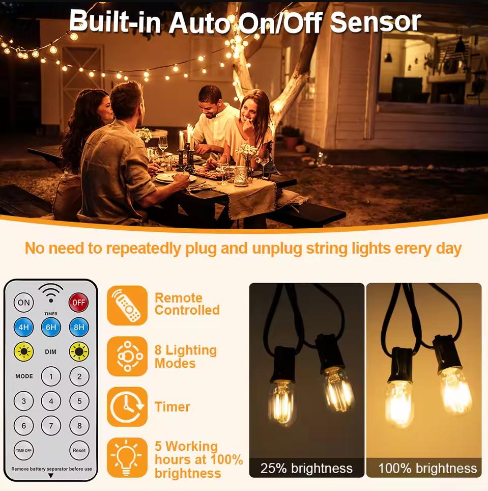 Solar Powered Outdoor String Light with 1200mAh Battery and Remote Control Waterproof Patio Lights Shatterproof LED String Light