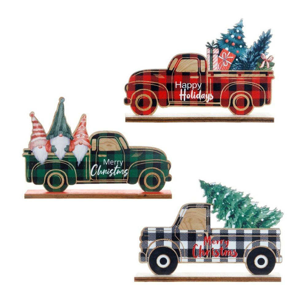 3pcs/set DIY Christmas Wooden Car Decorations Cartoon Christmas Car Ornament Christmas