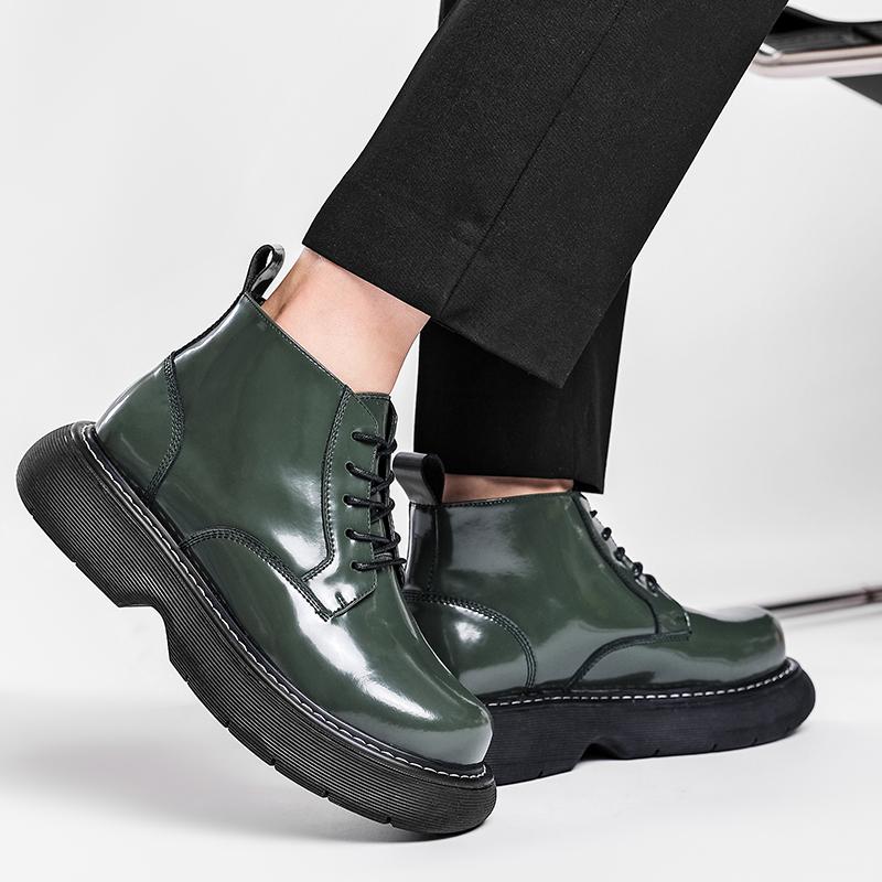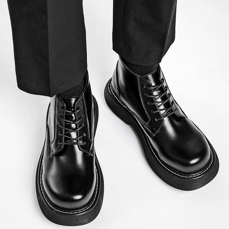 Мужские ботинки из черной кожи в британском стиле - Дизайн с увеличением роста, Прочные и стильные для осени, зимы и повседневных нарядов