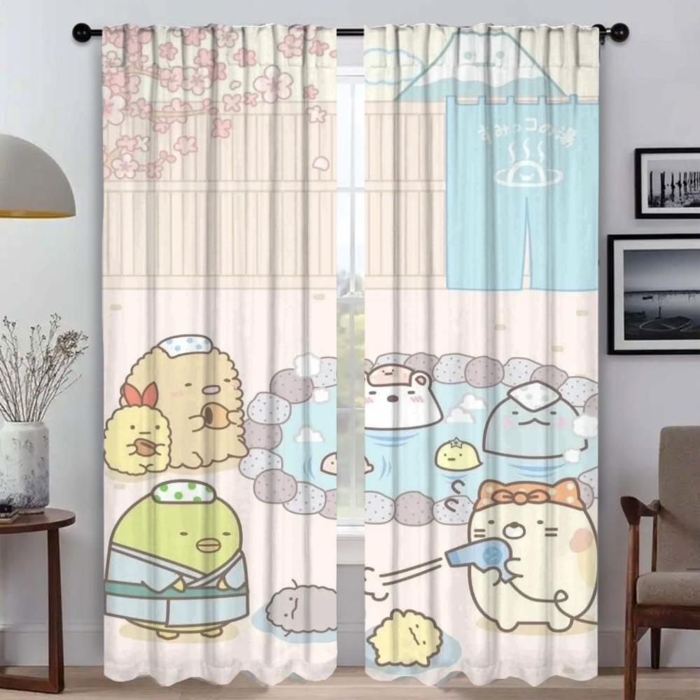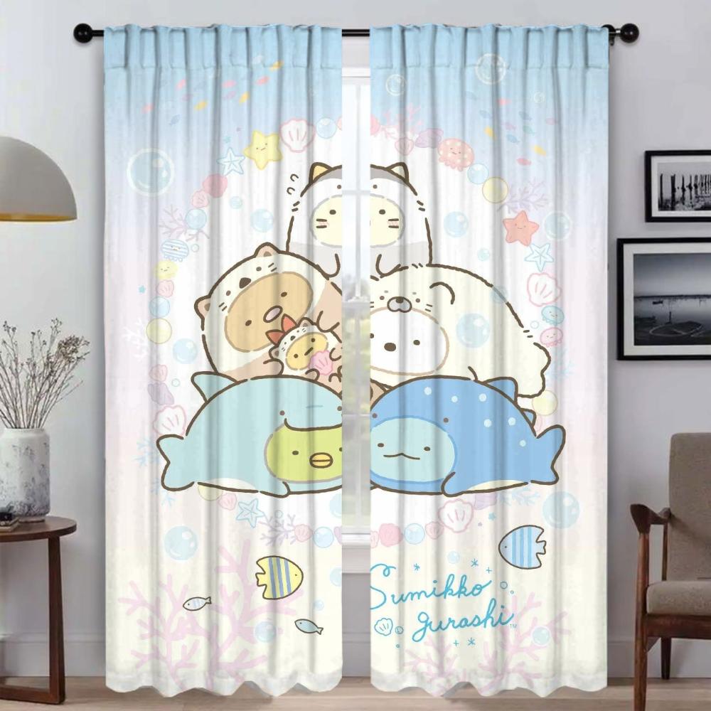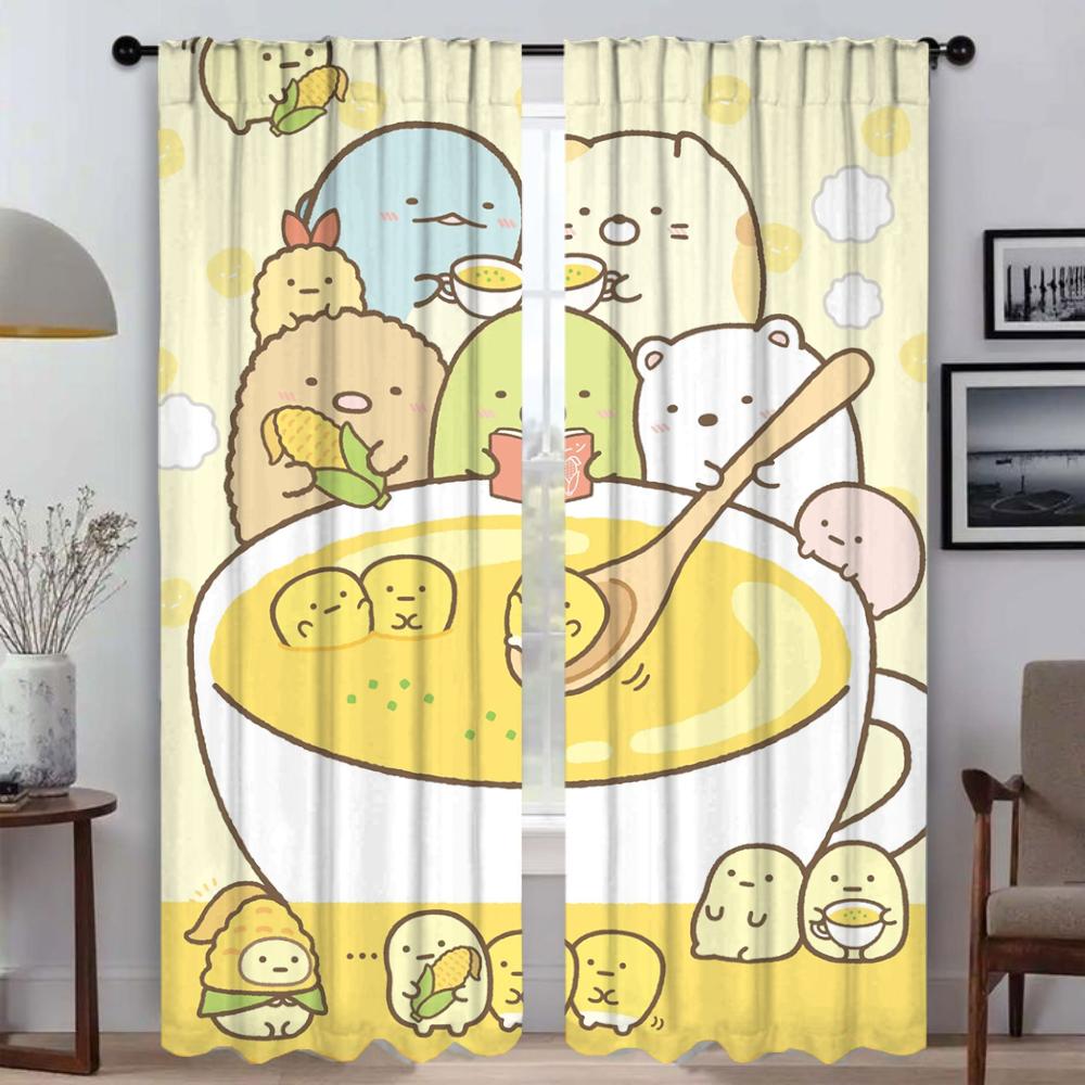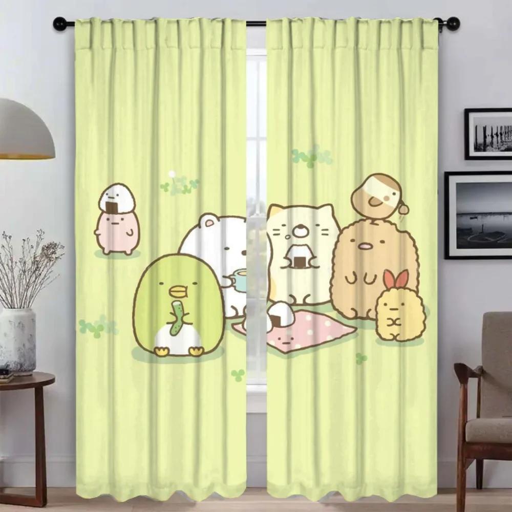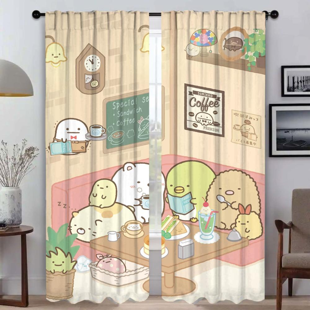 Шторы кухонные Sumikko Gurashi, 2 штуки, светонепроницаемые шторы для комнаты, 2 панели, украшение на Хэллоуин, шторы для домашнего интерьера