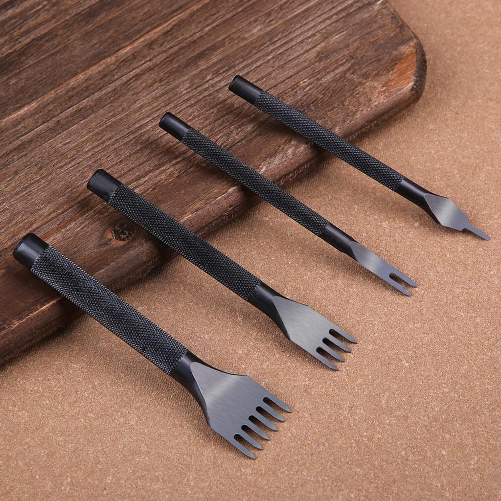 Премиальный набор пробойников для кожи Прочные инструменты из углеродистой стали для изготовления кожаных изделий - Черный, 1/2/4/6 зубцов