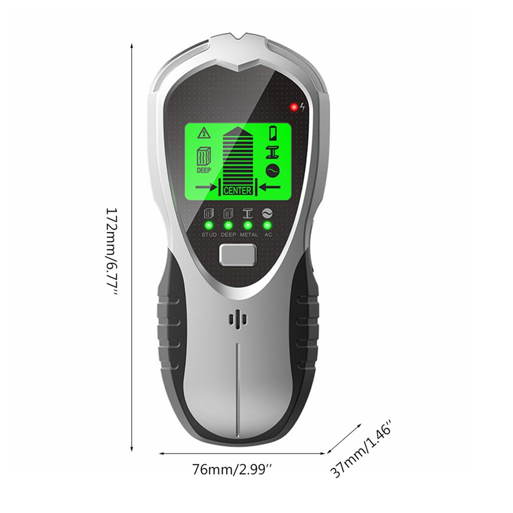 Многофункциональное обнаружение 4 в 1: Сканирование шипов имеет 4 режима: Сканирование шпильки: 0,75 дюйма/19 мм глубиной, сканирование шпильки: Глубина сканирования металла 1,5 дюйма/38 мм: 2,36 дюйма/60 мм глубиной, сканирование переменного тока: Глубина 2 дюйма/51 мм.