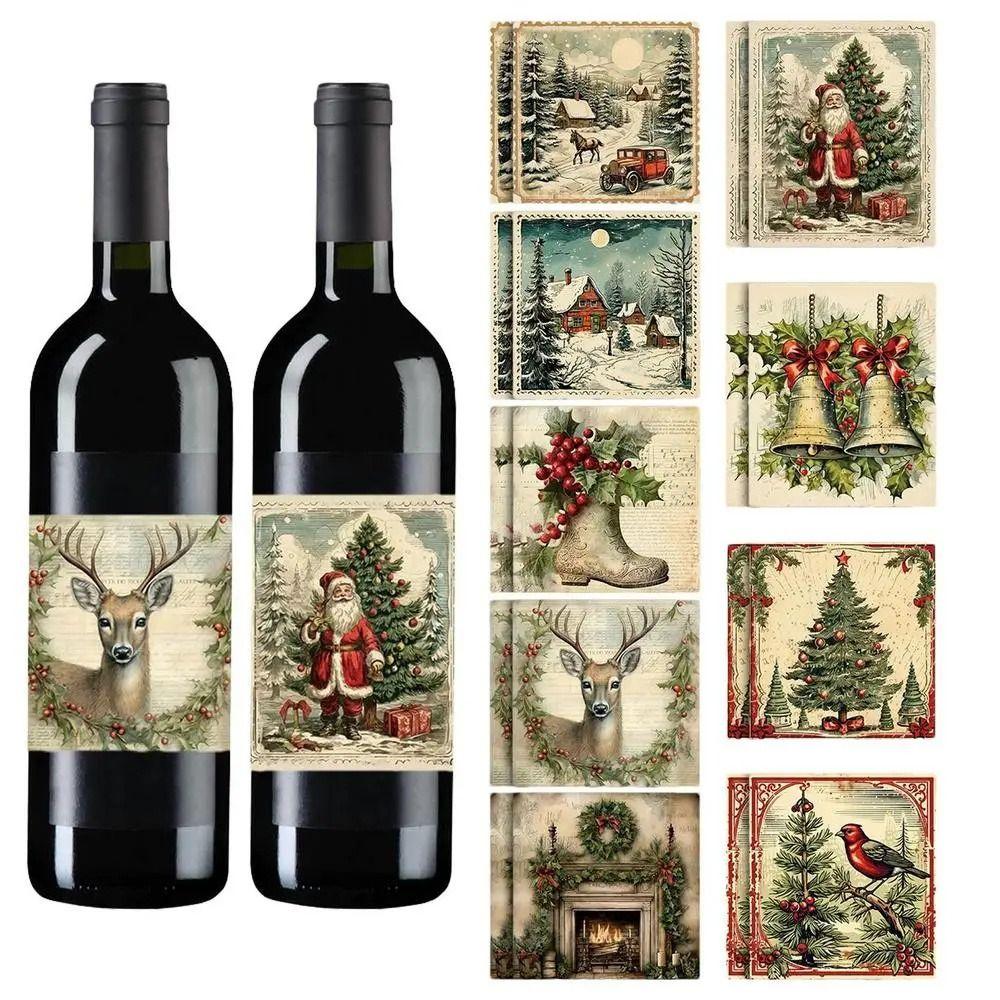 Санта Клаус Рождественская елка Бумажная этикетка на бутылку красного вина Сделай сам Чехол для винной бутылки Бар