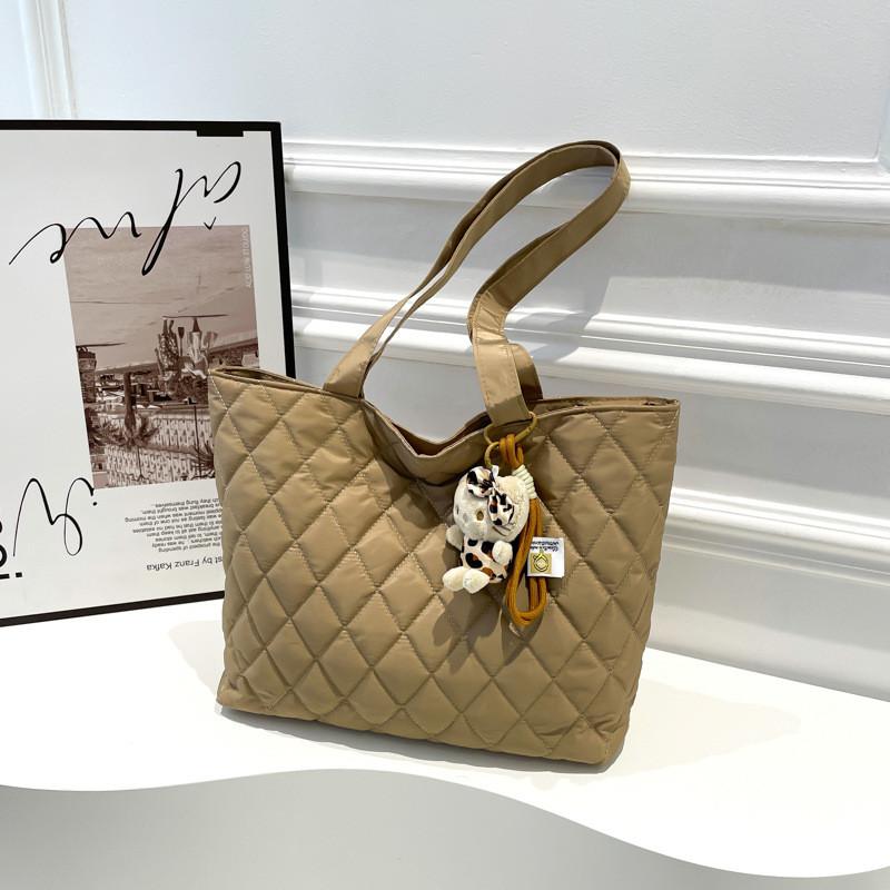 Изысканная сумка-тоут большой вместимости для женщин, модный стеганый дизайн, мягкая ткань, сумка через плечо, доступна в черном, белом, хаки