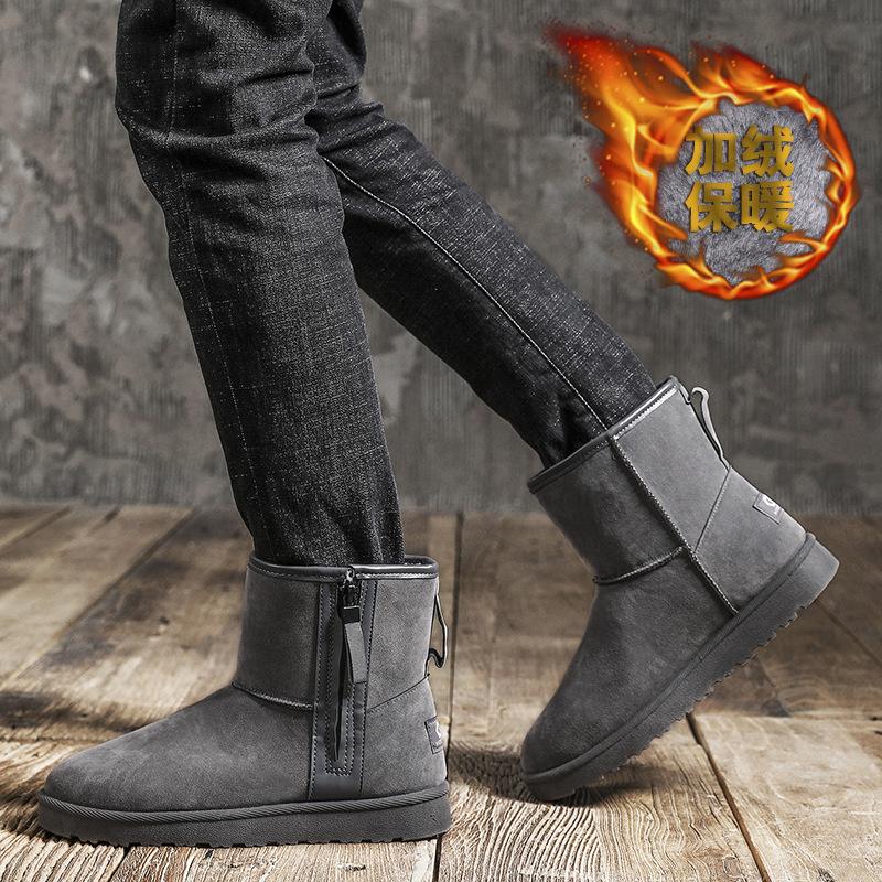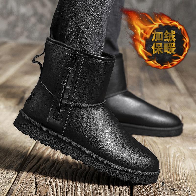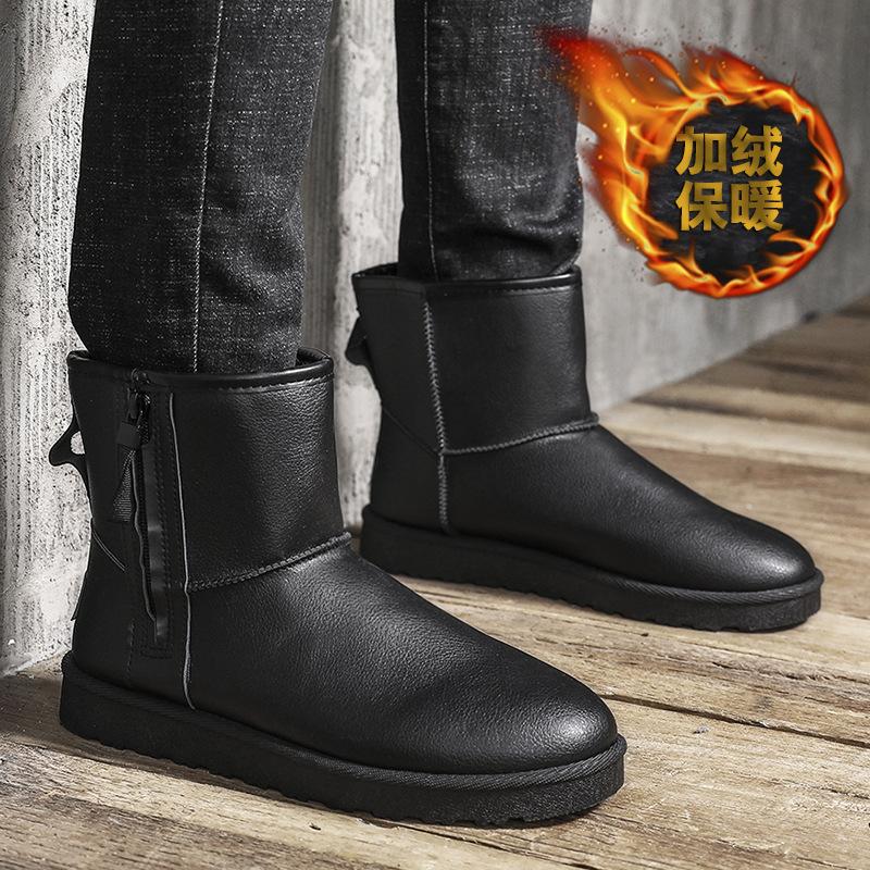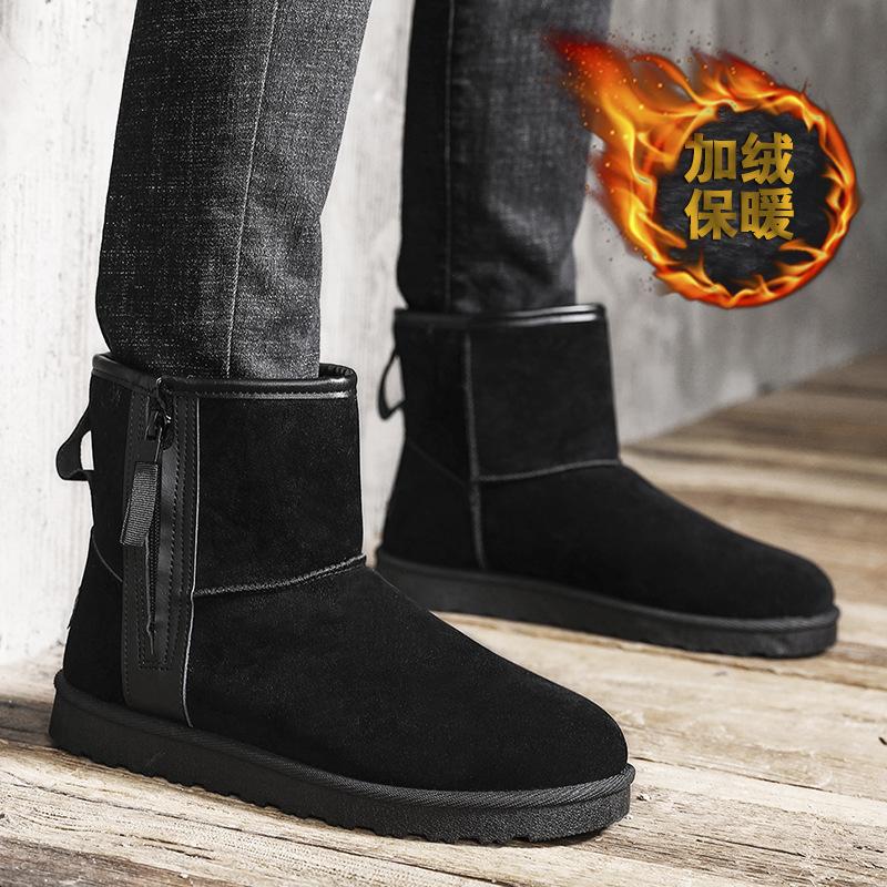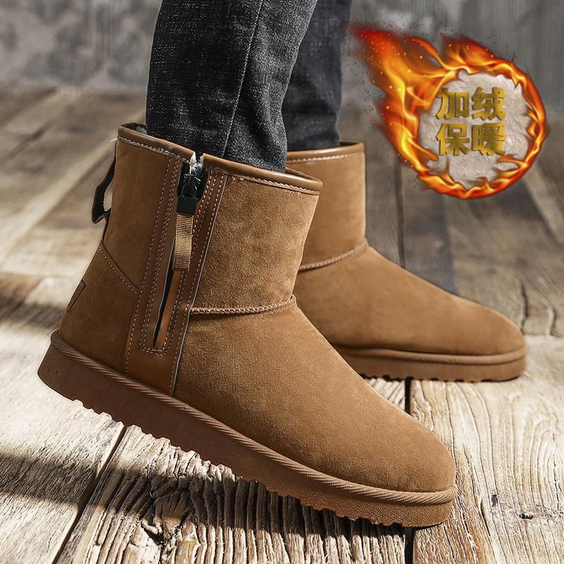 2025 матовые зимние сапоги мужские зимние теплые бархатные нескользящие утолщенные высокие хлопковые туфли хлебные туфли низкие ботинки