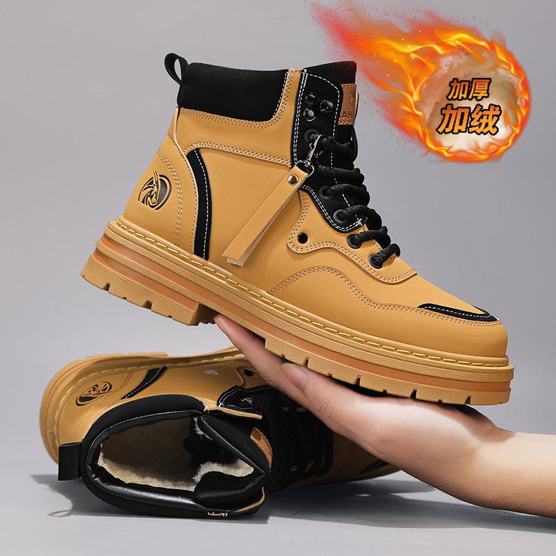 Мужские ботинки Martin, флисовые высокие мужские ботинки, зимние большие хлопковые ботинки для снега, рабочие ботинки, ботинки из ревеня, мужские кожаные ботинки