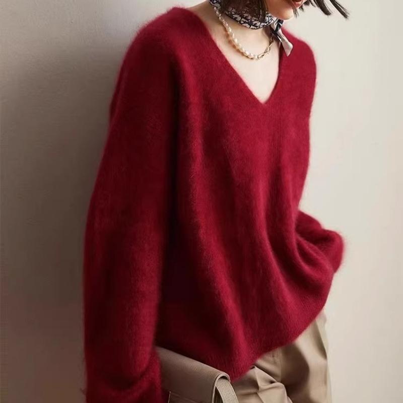 Осень Зима V-образный вырез Однотонный Базовый Вязаный Топ Женский Повседневный Модный Пуловер Свитер из Искусственного Меха Минки — купить товар онлайн с бесплатной доставкой по всему миру!