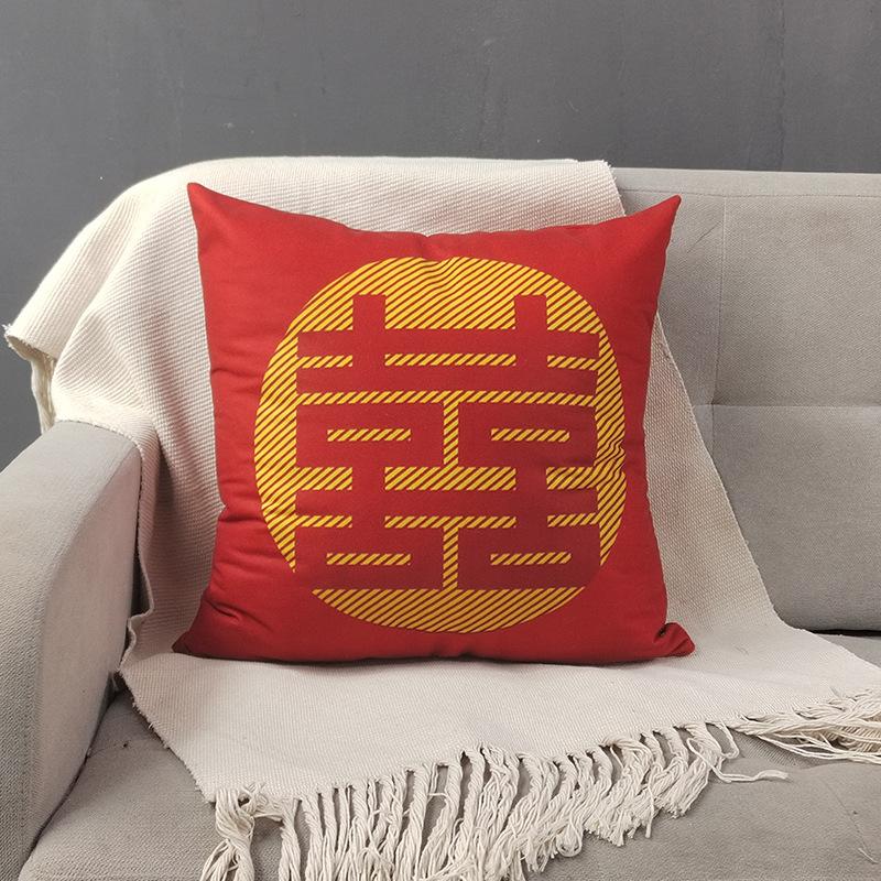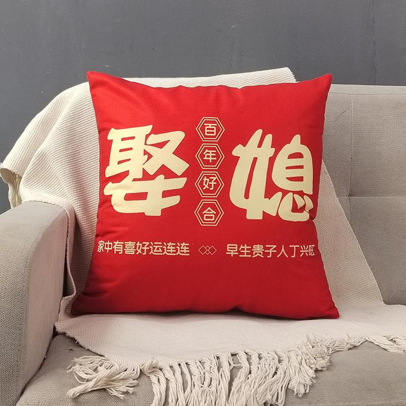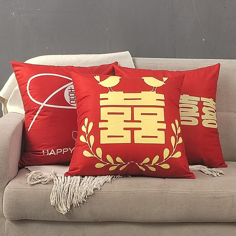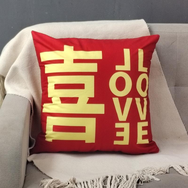 Свадебное украшение Подушка с надписью «Счастливые молодожены» Красная Наволочка Украшение свадебной комнаты Прикроватная диванная подушка Украшение свадебной комнаты