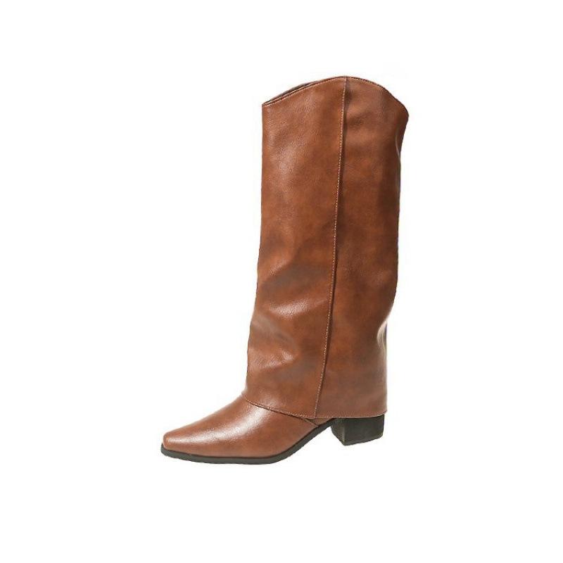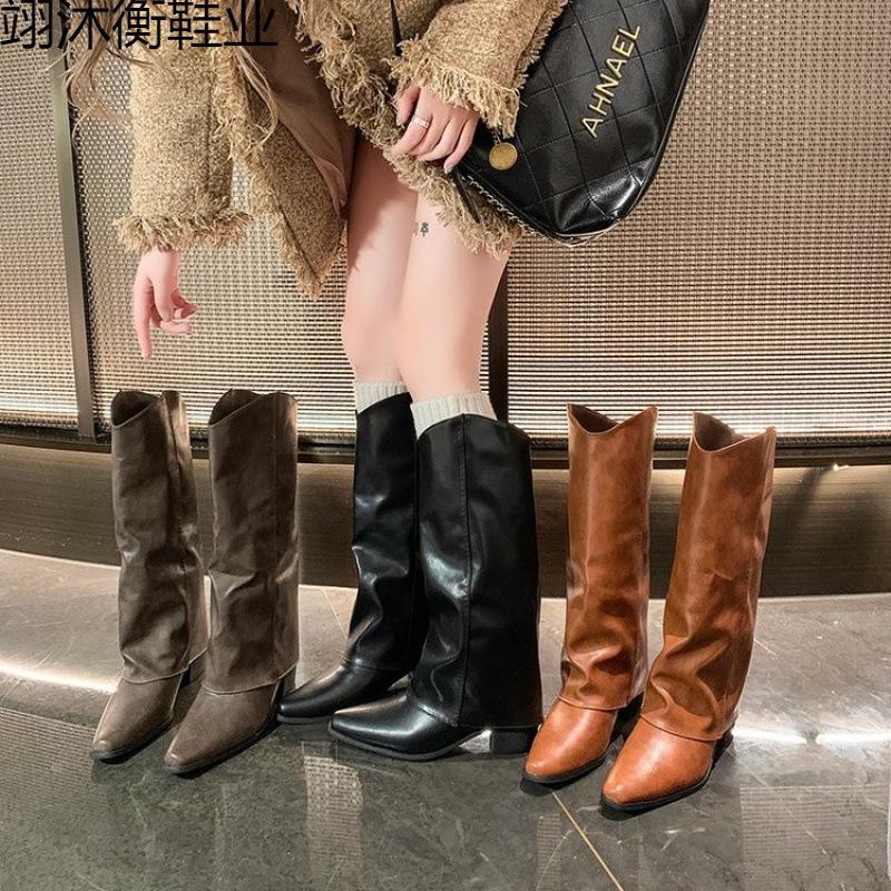 Но сапоги до колена на толстом каблуке с острым носком женские сапоги-трубы для брюк в стиле Spice girl для жареного уличного стиля